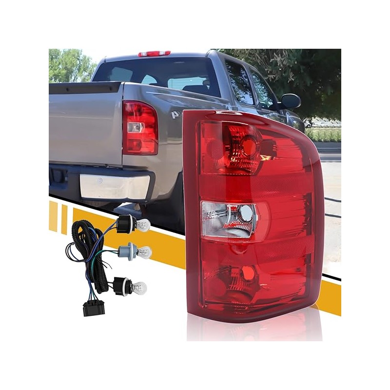 Tail Light Assembly Compatible with Chevy Silverado 07-13 1500 | 07-14 2500 HD 3500 HD, OE-Style Replaces 25958483 GM2801207, w/Bulbs and Harness, Right Passenger Side, Red Border
