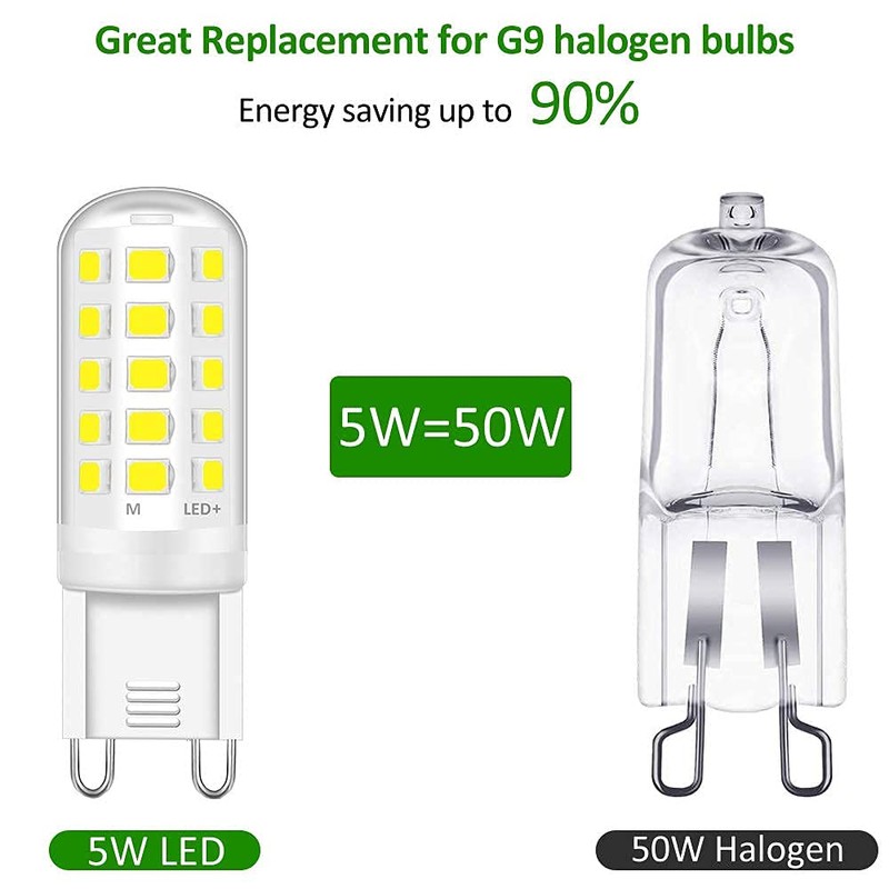 - [90% Energy Saving]: G9 5W Led Bulb Save over 90% of your electricity bill, the outstanding service life of up to 20,000 hours! Perfect replacement for 28W/30W/33W/35W/40W/50W G9 halogen bulbs.
