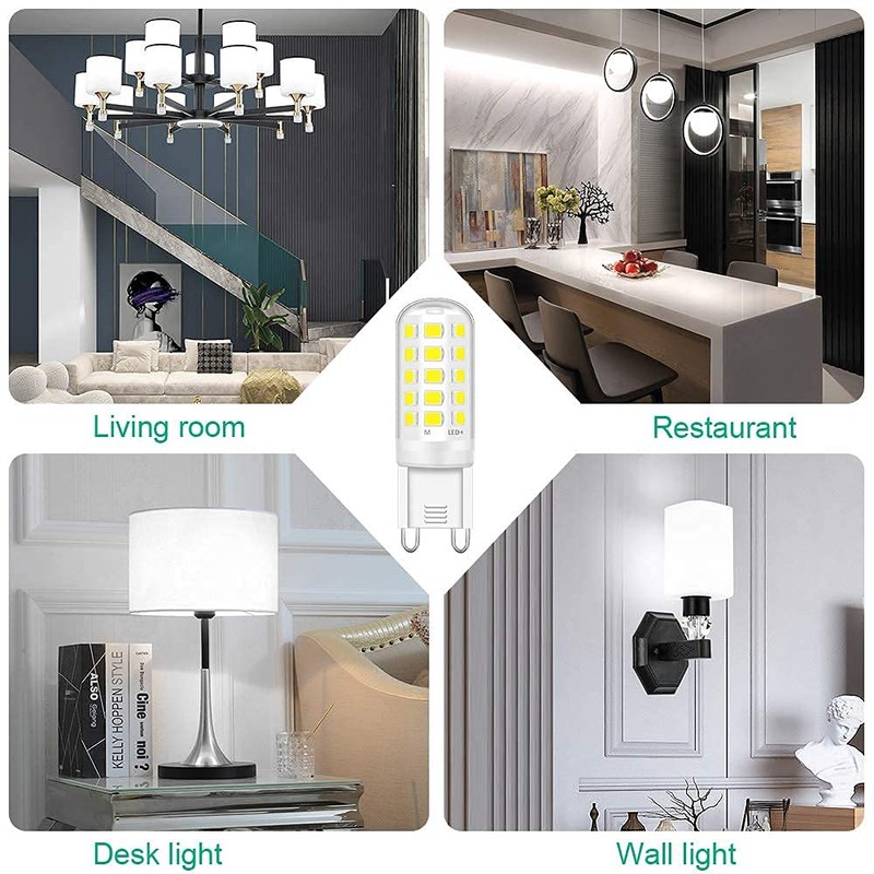 - [Easy to Install]: Standard G9 bi-pin base, easy and quick to install, perfect for use in kitchens, living rooms, dining room, bathroom, bedrooms and hallway, office, shop, etc.