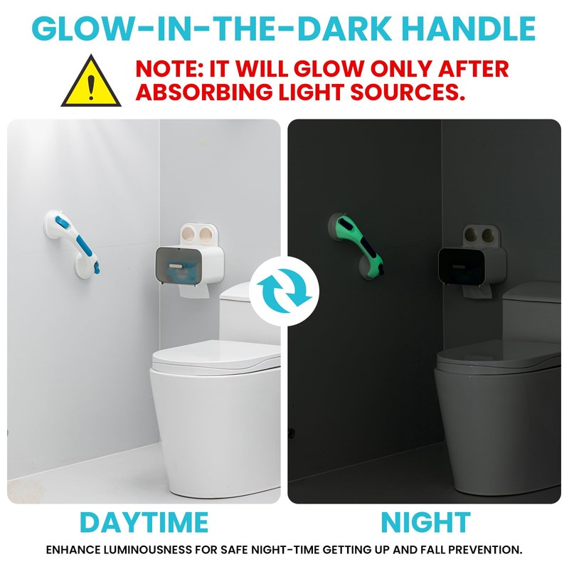 TAILI Grab Rails for Bathroom Glow in The Dark 2 Pack, 31 CM Suction Hand Rails for Elderly, MAX Hold 110 KG Shower Grab Bar for Elderly, Senior, Disabled, Shower Handles, Disability Aids, Blue