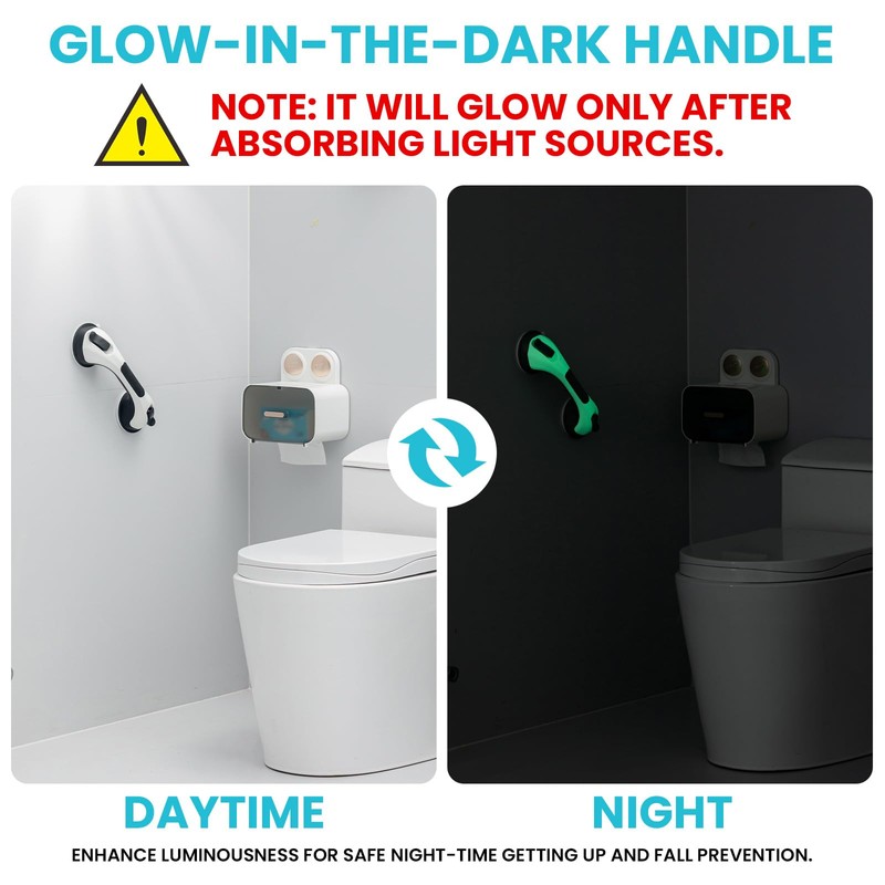 TAILI Shower Grab Bar Glow in The Dark, 2 Pack 12.2 in Grab Bars for Bathtubs and Showers,Shower Handles Shower Rails for Seniors and Elderly,Bathroom Safety Grip Removable No Drilling Waterproof Grey