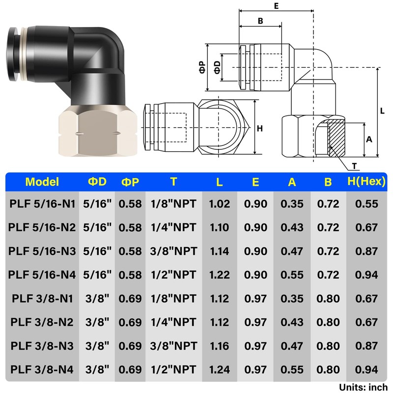 TAILONZ PNEUMATIC Female Elbow 3/8 Inch Tube OD x 1/2 Inch NPT Thread 90 Push to Connect Fittings PLF-3/8-N4 (Pack of 2)