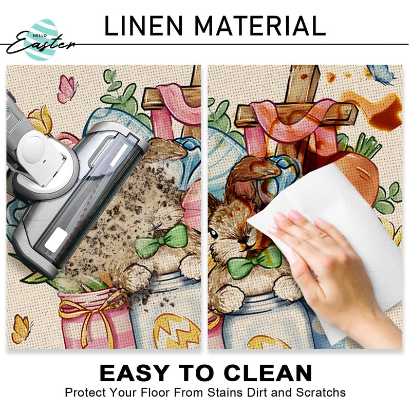 - Attractive Unique Design: The Easter non-skid doormat top was printed with Easter eggs, rabbits, Mason jars, tulip floral, carrots, eucalyptus leaves, butterflies, pink tartan checker patterns. Not only is it a beautiful and creative way to decorate your home, but it also brings you a deeply cheerful festive atmosphere