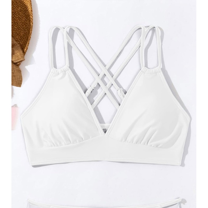 Tainehs Women's Push Up V Neck Bikini Tops Criss Cross Back Padded Bathing Suit Top Only White