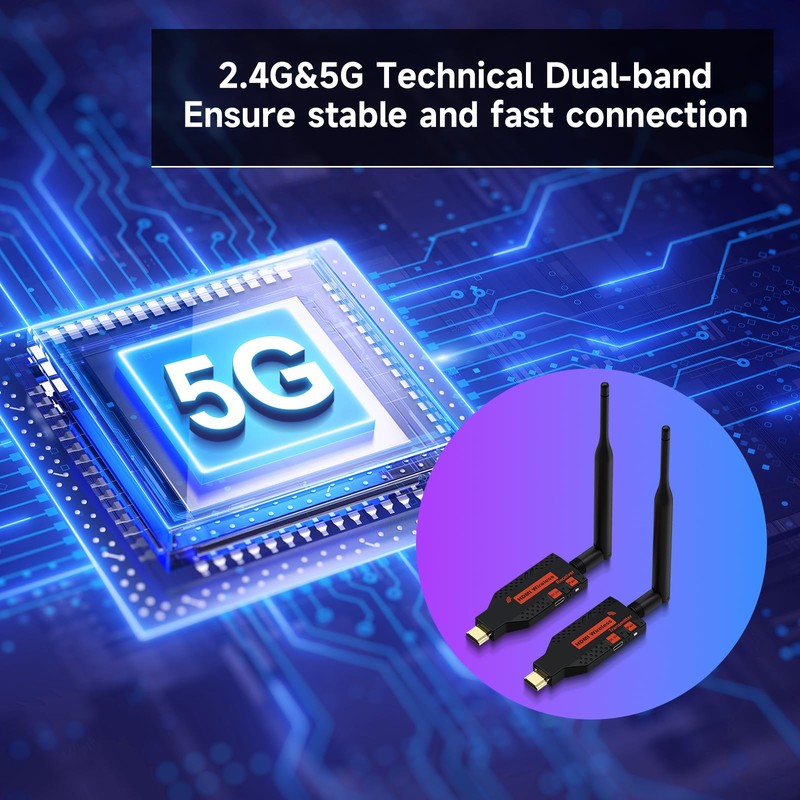 - [4K Decode & 1080P Full HD Output] Compatible with 4K high-resolution input and 1920 1080 @ 60Hz Full HD output, experience vibrant colours and high-fidelity images with our HDMI wireless transmitter and receiver.