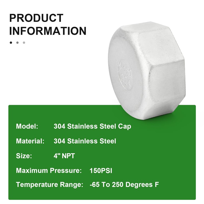 TAISHER 1PCS 304 Stainless Steel Cap Pipe Plug Socket Fitting 4" NPT Female