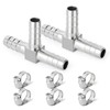 TAISHER 2PCS 304 Stainless Steel 8MM Hose Barb Fittings,3 Way Y Shape Joint Splicer Mender Fitting Union for Fuel/AIR/Lquid/Gas with 6PCS Hose Clamp