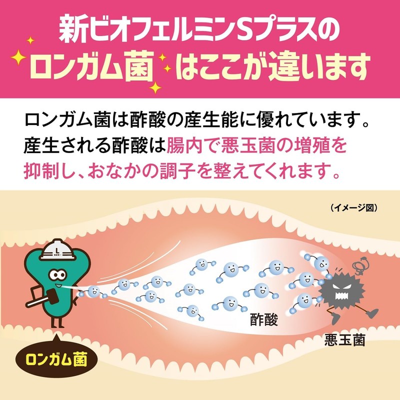 Product Benefits | The Shin Biofermin® S Plus Tablet is an orthopedic drug that contains Longham bacteria in the previous product (Biofermin® S tablets). The 4 types of lactic acid bacteria derived from humans suppresses the growth of germs, and helps to condition the disrupted intestinal flora and improve the symptoms of stomach (soft feces, constipation, and belly bloss)The Shin Biofermin® S Plus Tablet is an orthopedic drug that contains Longham bacteria in the previous product. |