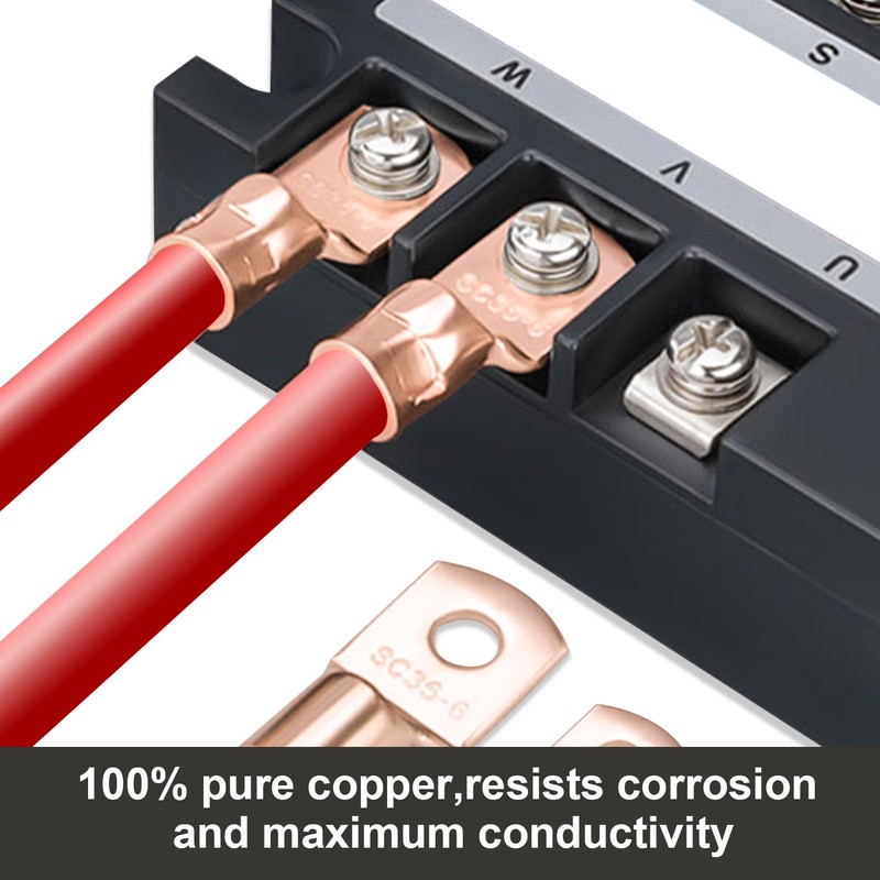 These battery cable wire lugs are suitable for automobiles,distribution boxes,ships,motorcycles,solar panels,DIY wires,outdoor applications and home applications.The Heavy Duty Battery lugs is made of pure copper,which has corrosion resistance and maximum conductivity.