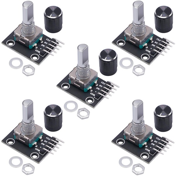 - Package content: 5pcs x Rotary Encoder Module + 5pcs black Knob .