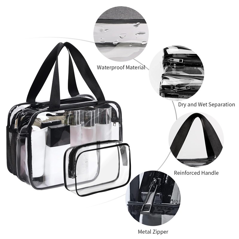 - 【Multifunctional】: This clear travel toiletries bag serves various purposes, doubling as a beach bag, gym bag, travel bag, cosmetic bag, camping bag, or storage bag. Its an excellent gift choice for women, men, and children alike.