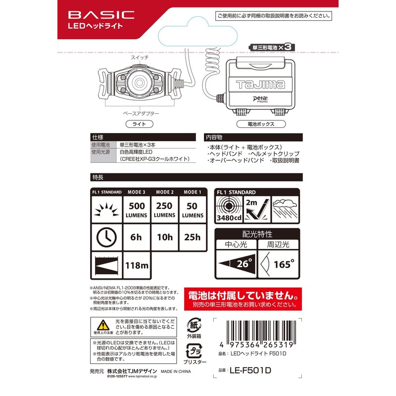 Can be used at a maximum of 25 hours (at 50 lm) with 3 AA batteries.