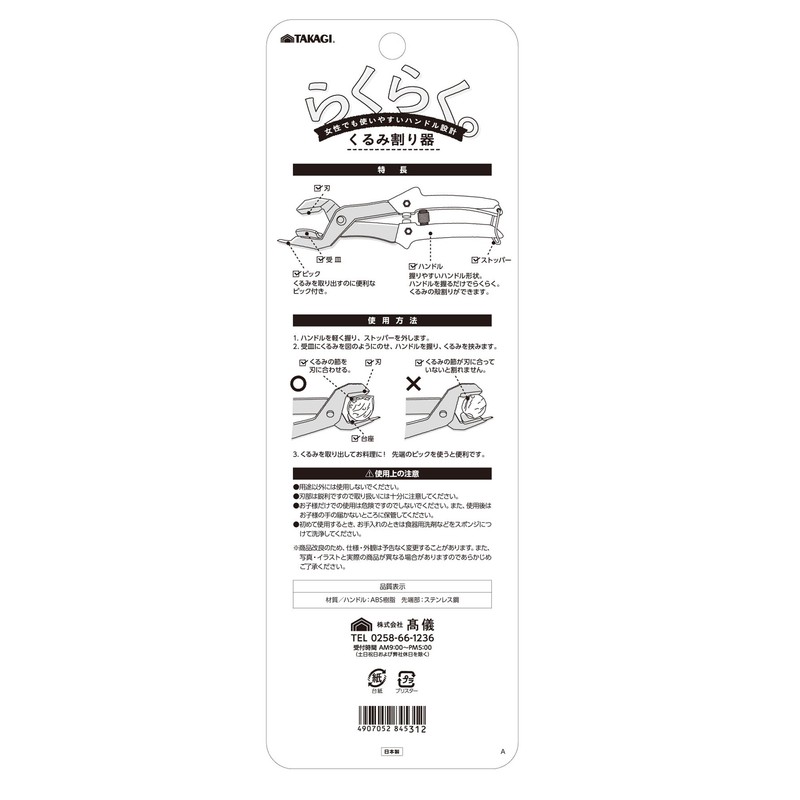 Takagi Easy Nutcracker, Silver, 8.7 x 2.5 x 0.9 inches (220 x 64 x 23 mm)
