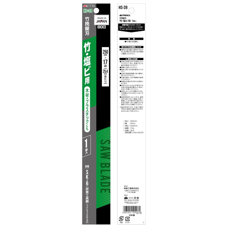 Takagi GISUKE HS-39 Bamboo Saw Blade for Bamboo and PVC 9.8 inches (250 mm)