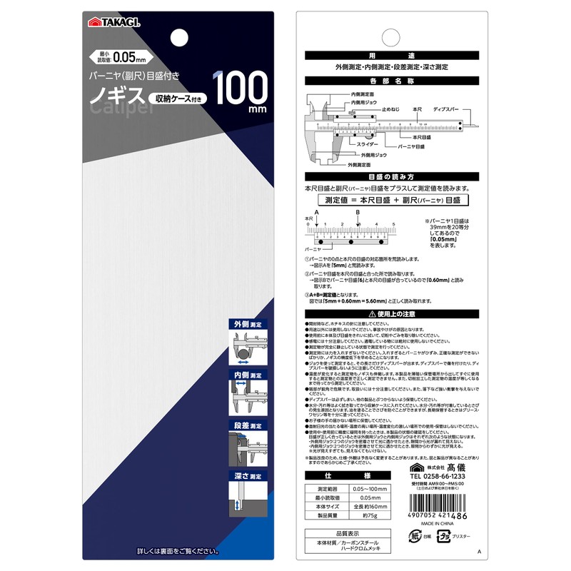 Takagi Vernier Caliper 3.9 inches (100 mm) with Storage Case
