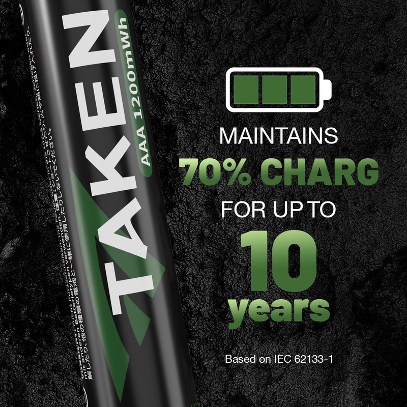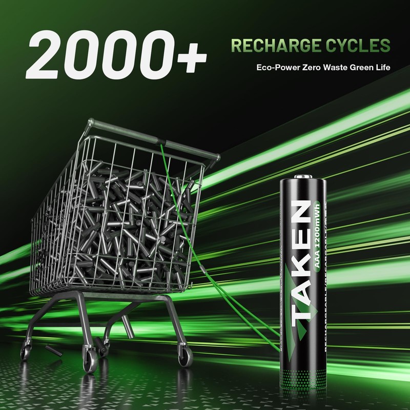 - SAFE, LEAK-PROOF & ECO-FRIENDLY: TAKEN NiMH Rechargeable triple AAA batteries are designed to be absolutely safe and are the world's first AAA batteries to use 25% recycled materials. With ultra-leak-proof technology, they deliver reliable performance while minimizing impact on the environment. Choose our sustainable option and enjoy worry-free, eco-friendly energy