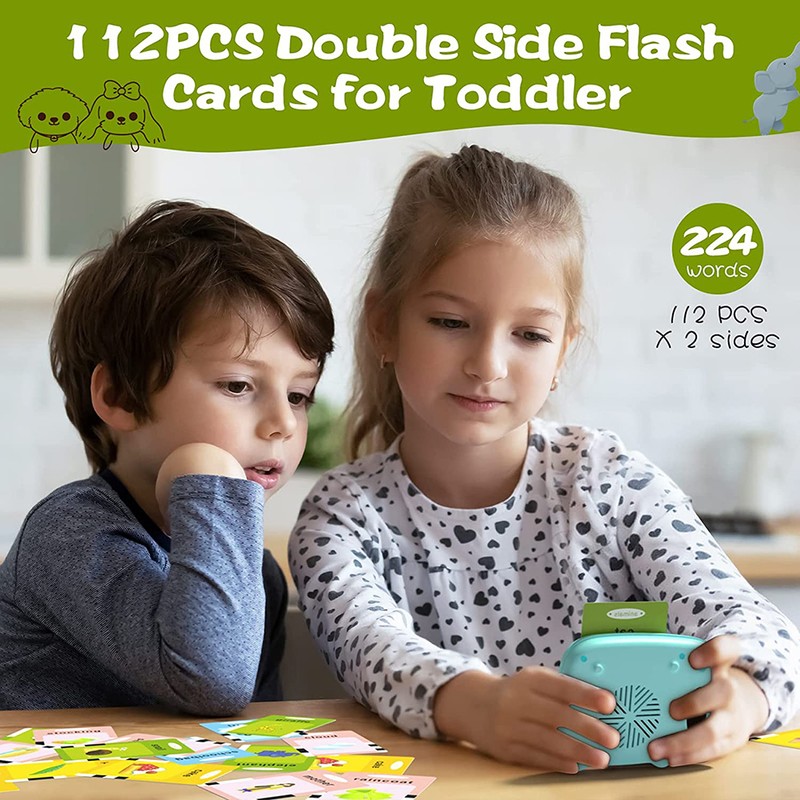 1、【Kids Learning Toys】 112 double-sided flashcards with 224 words. There are 12 themes, including animals, transportation, objects, food, fruits, vegetables, clothing, nature, colors, people, occupations, and shapes. These electronic talking flash cards also feature realistic animal and car simulation sounds, which not only deepens children's memory of words, but also stimulates their imagination. 2、【Speech Learning and Autism Toys 】 The talking flash card learning toys can interact with kids, excellent autism learning materials self-learning tools.It is the best speech learning toys for kids aged 3 4 5 6. 3、【Easy to Use】 Just insert the card right into the reader and it is ready to use. No need for the internet. This educational interactive toy can be played repeatedly and the volume adjusted. With built-in battery, and USB cable, rechargeable. 4、【Small and Portable】 Your kids can bring this educational interactive toy to play with their classmates and enjoy the fun of learning. 5、【Gifts for Boys and Girls】 If you are looking for a fun and educational gift for your kids, then these young children learning flash cards are the best choice. Whether it's for birthday, Halloween, Thanksgiving or Christmas.