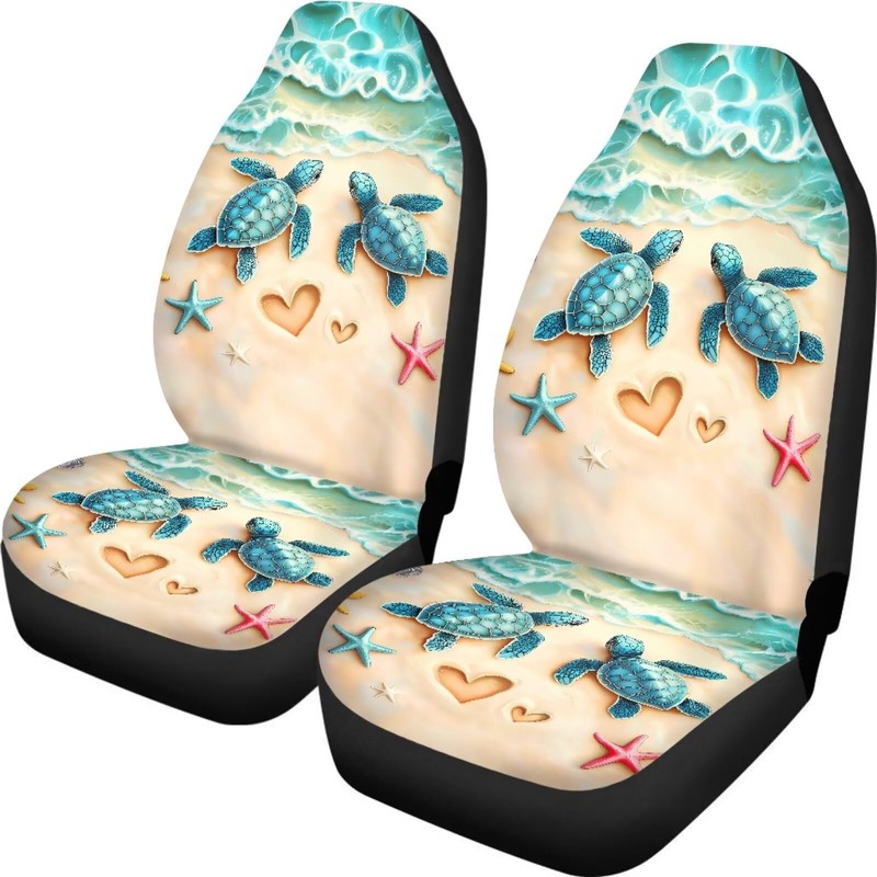 Talayituse Beach Turtle Starfish Heart Print Car Seat Covers Full Set Universal Fit Washable Car Front Seat Protector Saddle Blanket Auto Interior Decoration Accessories, Set of 2