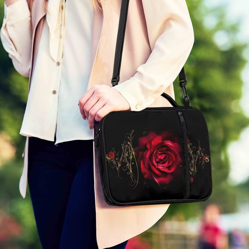 Talayituse Red Rose Print Bible Cover with Handles and Shoulder Strap, Portable Zippered Bible Carrying Case Large Size Book Cover Church Tote Bag Gift for Women Men