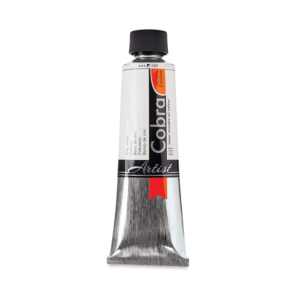 Cobra Artist oil paint in zinc white 104 is an opaque colour with excellent light fastness (+++).