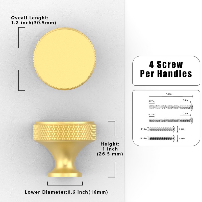 - Measurement: Diameter 1.2"(30.5mm); Base Diameter: 0.6"(16mm) ; Height: 1"(26.5mm); Please check the Size of handles you require carefully before purchasing.