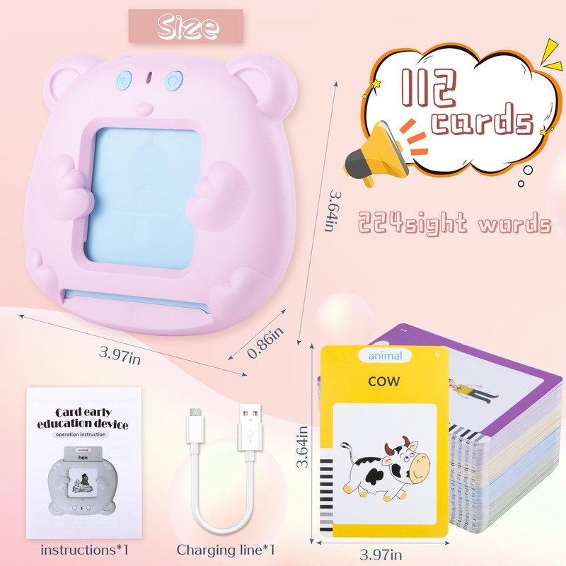 - 【112 kidsFlashcards 】 - The Flashcard set contains 112 uniquely designed double-sided flashcards and a card reader.Make each card sound by QR recognition.It's a great way for them to learn to explore different possibilities,enhance their cognitive abilities,and practice their listening.