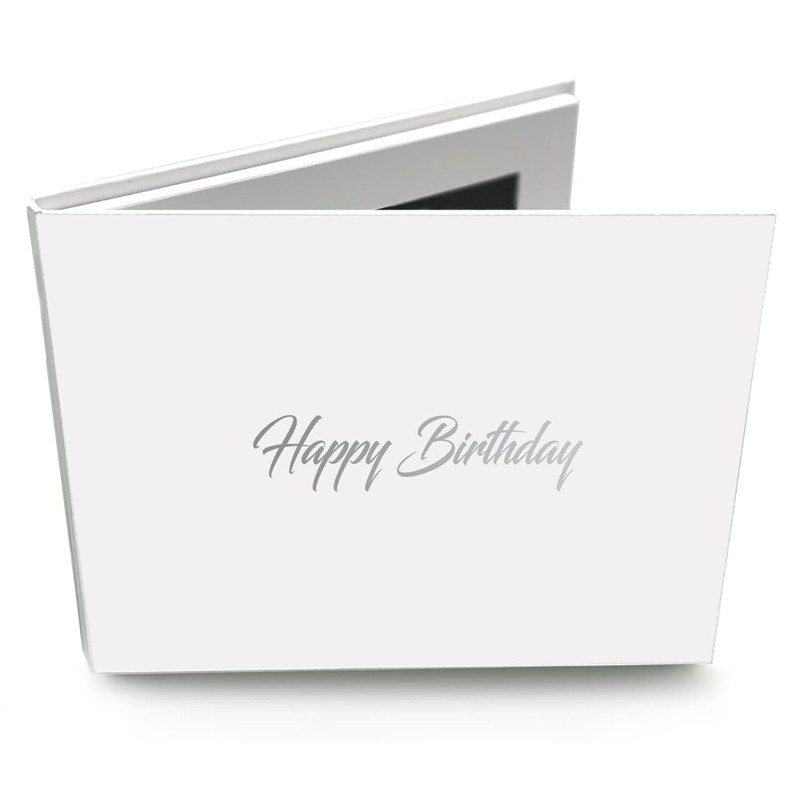 • DIGITAL VIDEO MEMORY BOOK – Our A5 digital video book features a 7-inch IPS HD screen, ideal for showcasing memories and events like birthdays, weddings, anniversaries, or farewell parties. Hardbacked cover features beautiful silver foiled 'Happy Birthday' script. Completely re-recordable, allowing you to update your book with new memories as often as you like.