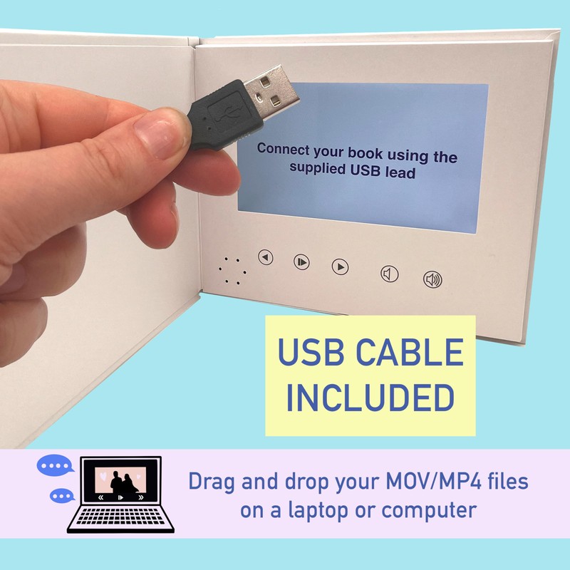 • EASY TO USE – The digital photo book is incredibly user-friendly. All you have to do is connect it to a computer or laptop using the included USB cable and drag and drop your desired video files onto its memory card. Perfect DIY memory and family album project. Comes with USB connector and a 12-month guarantee.