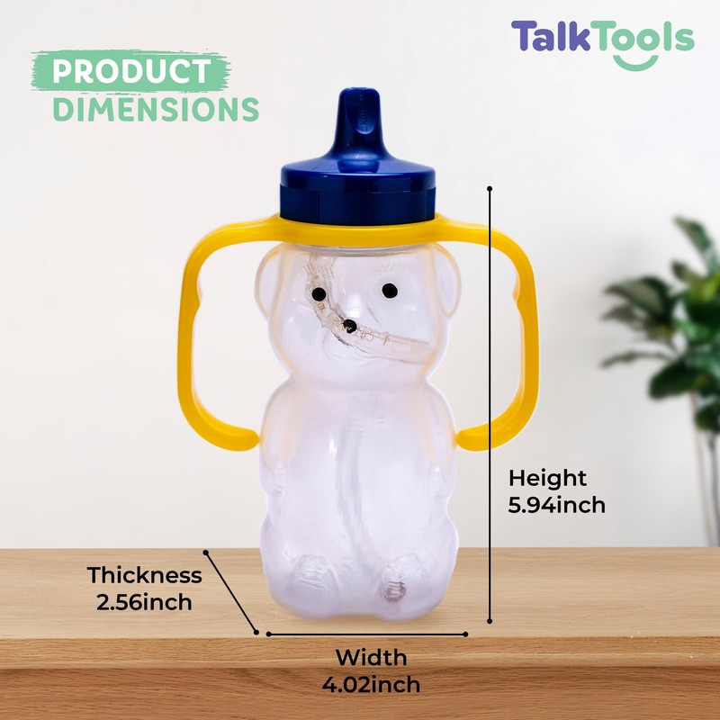 Talktools Honey Bear Drinking Cup with 2 Flexible Straws - Includes Instructions - Spill-proof Lid