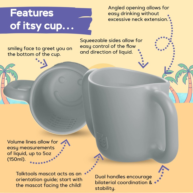 TalkTools Itsy Baby Utensil Set – Silicone Training Cup, Plate and Twin Spoon Pack for Toddlers| Infant First Food Self Feeding Silicone Training Set (Cloud)