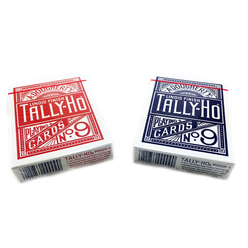 Tally-Ho #9 Poker playing cards Fan Back Design 12 Decks. A high quality, Linoid finish makes Tally-Ho playing cards the premiere choice among flourishers and card magicians alike. The classic Fan Back design exudes elegance, quality, and sophistication. Made in the USA.