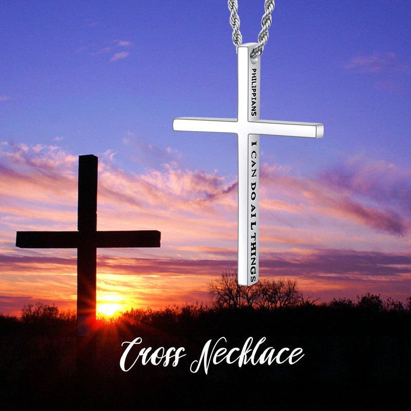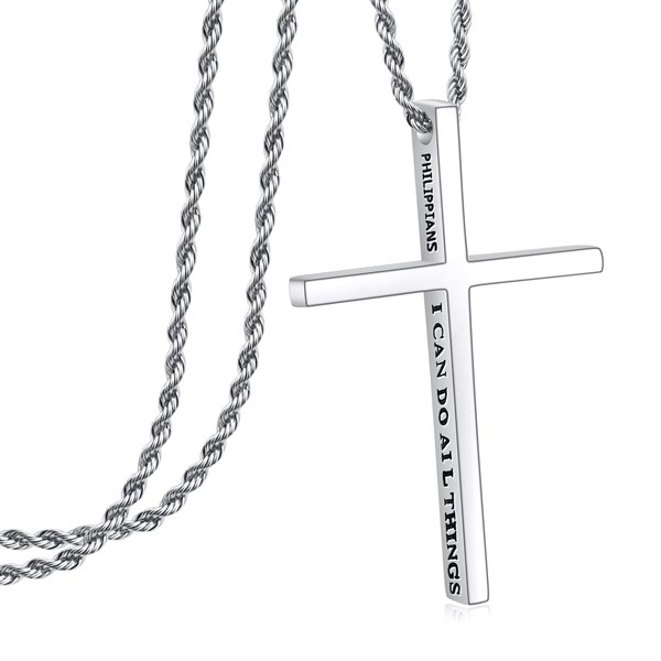 - 【 Cross Necklace for Men】Engraved ''Philippians I Can Do All Things'',Through Christ Who Strengthens Me.Christian Inspirational Gift. Give more confidence and encouragement to him/her.