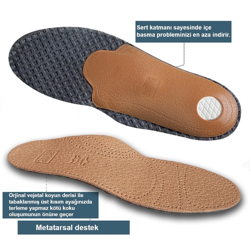 - NEFES ALABİLİRLİK: Bitkisel olarak tabaklanmış koyun derisi ve aktif karbon latex sayesinde ayakta oluşabilecek kötü kokulara karşı koruyuculuk sağlar. Ayrıca deri üzerinde ki hava kanalları sayesinde ayağınızın gün boyu hava almasına ve kötü kokuları gidermesine yardımcı olacaktır.