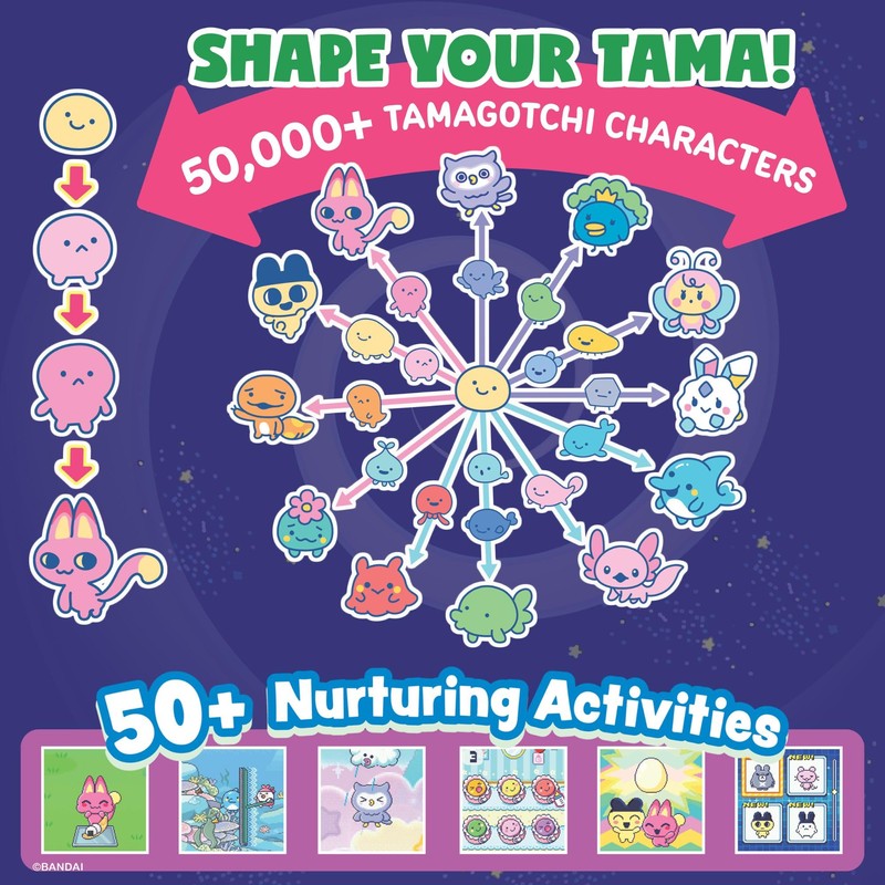 - GROWTH | Your Tamagotchi interactive pet will grow based on their parent's genes, the environment, and the care you give them. Raise your electronic pets naturally, in the lab, or connect with friends to discover over 50,000 different combinations.