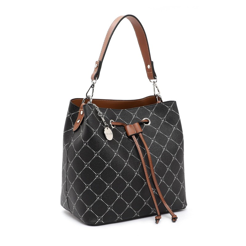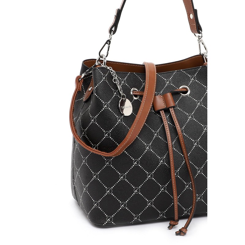 Fashionable pouch bag from Tamaris in print design and genuine leather look. The main compartment is separated by a middle wall with zip closure and thus offers a good way to divide your items. It can be carried either with the comfortable shoulder strap or the removable carry handle. The stylish and practical accessory for any occasion.