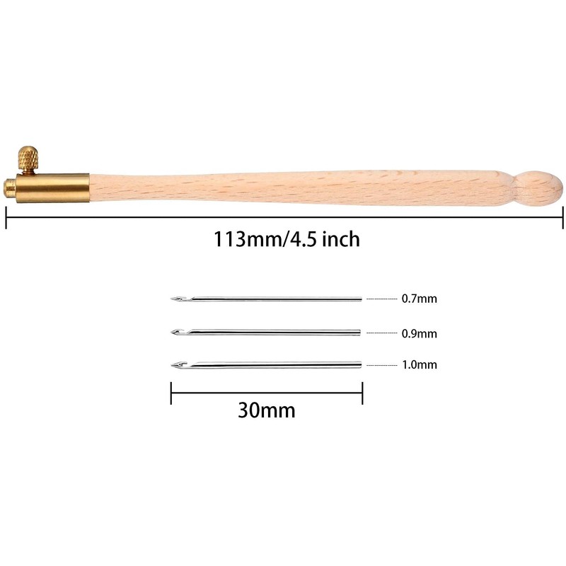 - Size The length of the wooden handle is 11.3 cm. The three needles are 3 cm long, have a diameter of 0.7, 0.9, 1.0 mm and can be replaced.