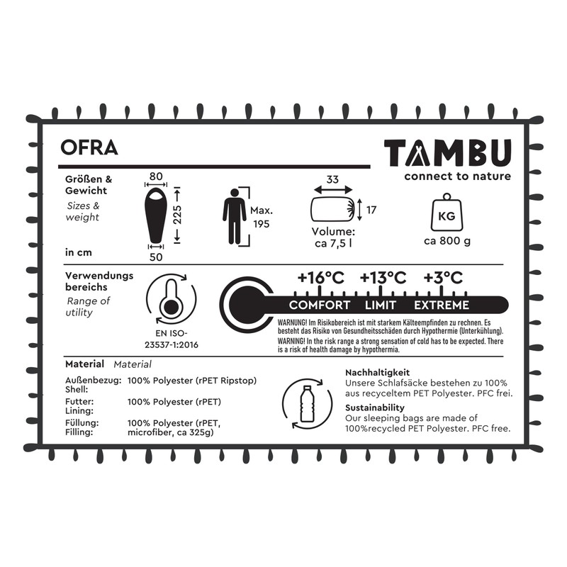 - Environmentally friendly material: made from 100% recycled polyester, chemically safe and PFC-free. With the "Connect to Nature" promise, Tambu sets a clear sign of sustainability