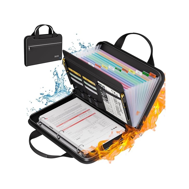 Tamfile Fireproof Accordion File Organizer with Handle, 13 Pocket Expanding File Folder with Zipper & Labels, File Folder with 3 Ring Binder, Multi Pockets Paper Organizer Folder for Letter A4 Files