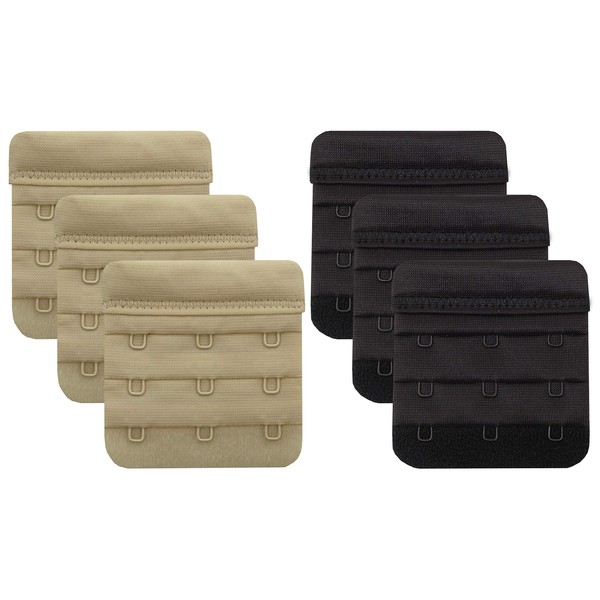 Tamlien Women Bra Extender 3 Hook,Soft Comfortable Bra Strap Extensions - 6 pcs Pack (Black/Beige)