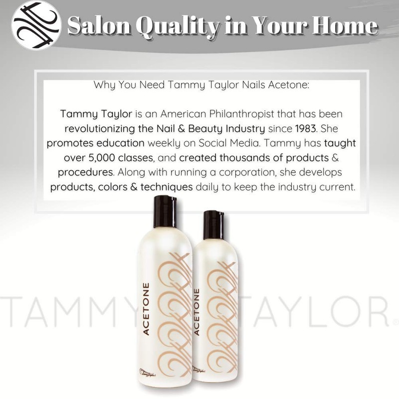 - Hand-Crafted in Southern California: Every Tammy Taylor Product is inspected by Tammy herself to ensure perfection. Our Acetone has gone through multiple different tests and versions for your convenience.