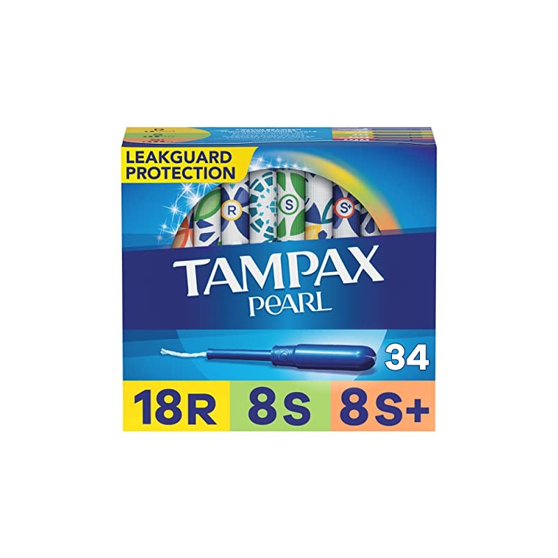 Tampax Pearl Tampons Multipack, Regular/Super Plus Absorbency, With Leakguard Braid, Unscented, 34 Count