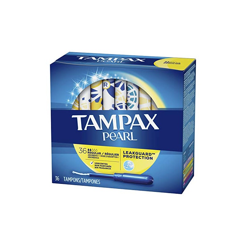 Tampax Pearl Tampons Regular Absorbency with LeakGuard Braid, Unscented, 36 Count