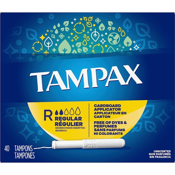 Tampax Tampons, Regular Absorbency, Cardboard Applicator, Leakgaurd Skirt, Unscented, 40 Count