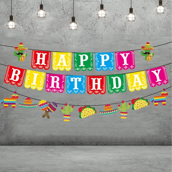 TAMUNI 3 Pack Vibrant Mexican Party Decorations, Mexican Fiesta Banner Set, Happy Birthday Papel Picado Banner Flag, Perfect for Fiesta, Cinco De Mayo & Mexico Style Birthday Parties