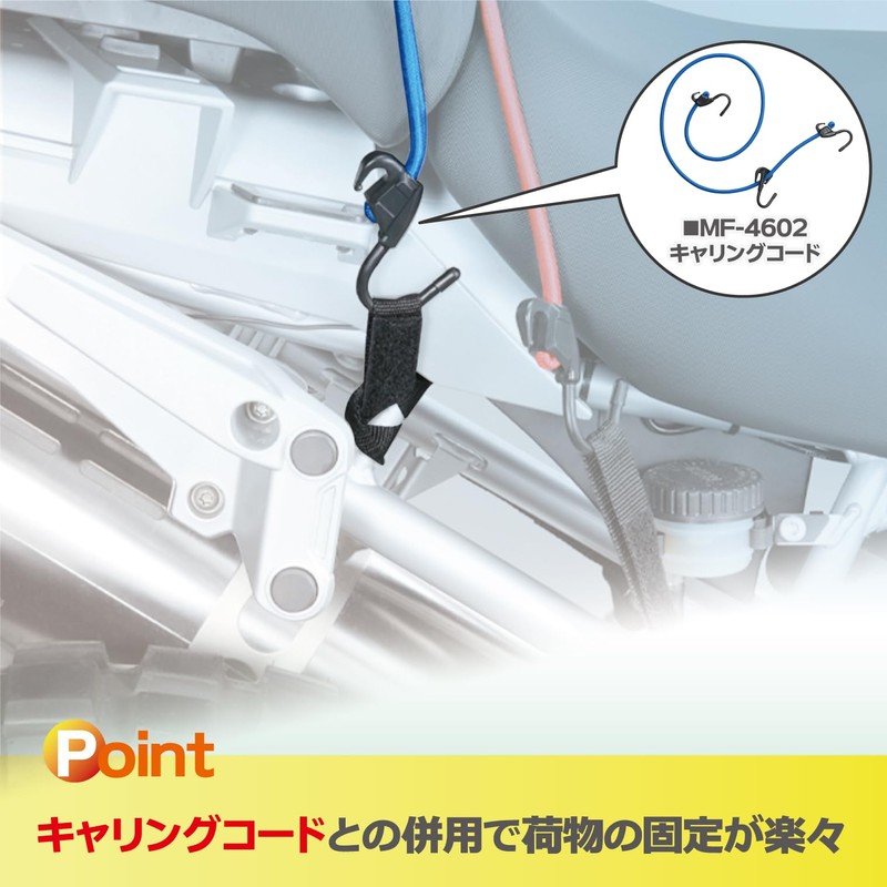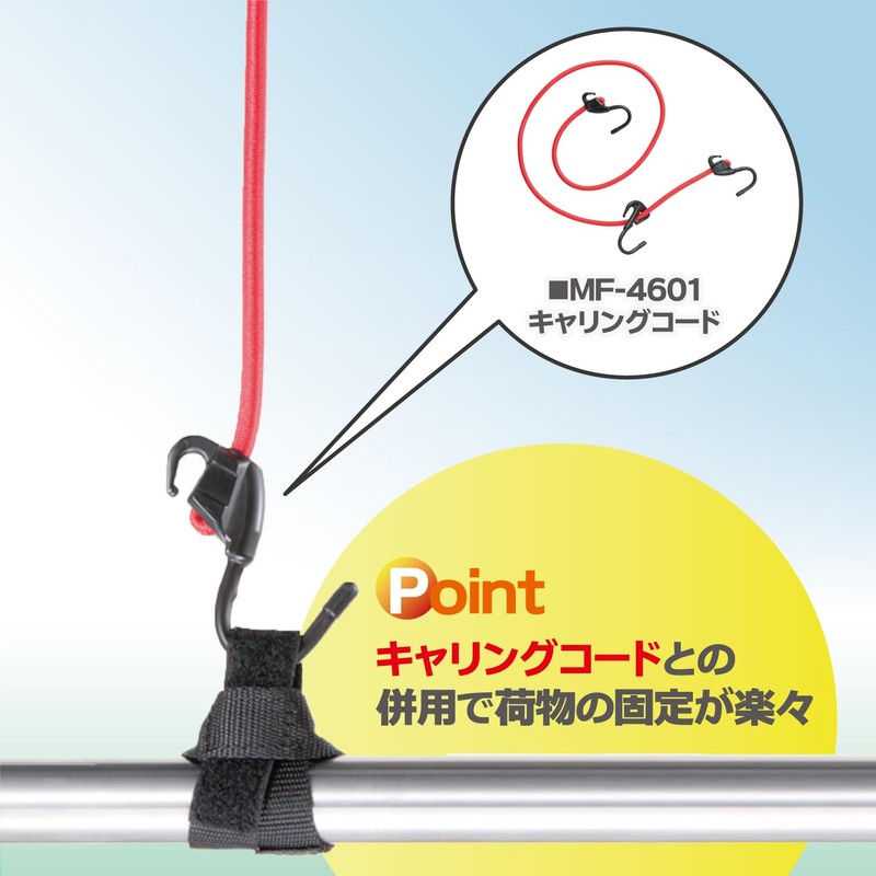 - ■ Simply wrap it around the frame or seat rail to hang a net or cord for securing luggage. ■ Comes with Velcro tape so there is no need to worry about it coming loose or falling off