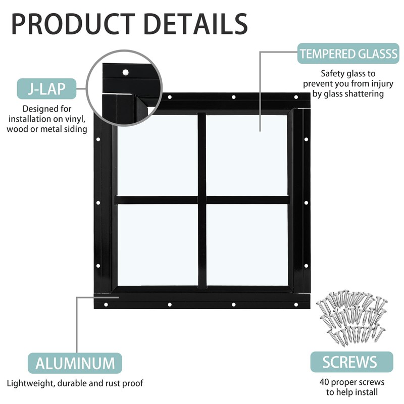 - Complete Package: the package includes 2 flush mount shed windows with tempered glass, about 12'' x 12'', 1 pack of 40 pieces of screws, offering the practical components for installation; This complete package makes it easy for you to replace your old shed windows and enjoy the natural light