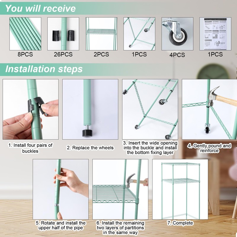 - Open Design: open design provides excellent visibility, prevents dust accumulation, and allows for better organization; The cleverly engineered design allows the metal shelf on wheels to easily fit into various environments; Whether it's for a university dormitory or a small apartment, the shelf is easy to transport and store, making it a supremely versatile storage solution