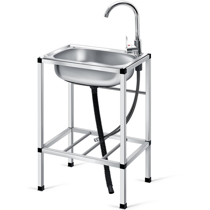 Tandefio Freestanding Outdoor Kitchen Utility Sink Set Stainless Steel Single Bowl Sink Portable Commercial Utility for Restaurant Cafe Bar Hotel Garage Laundry Room(Single Bowl)