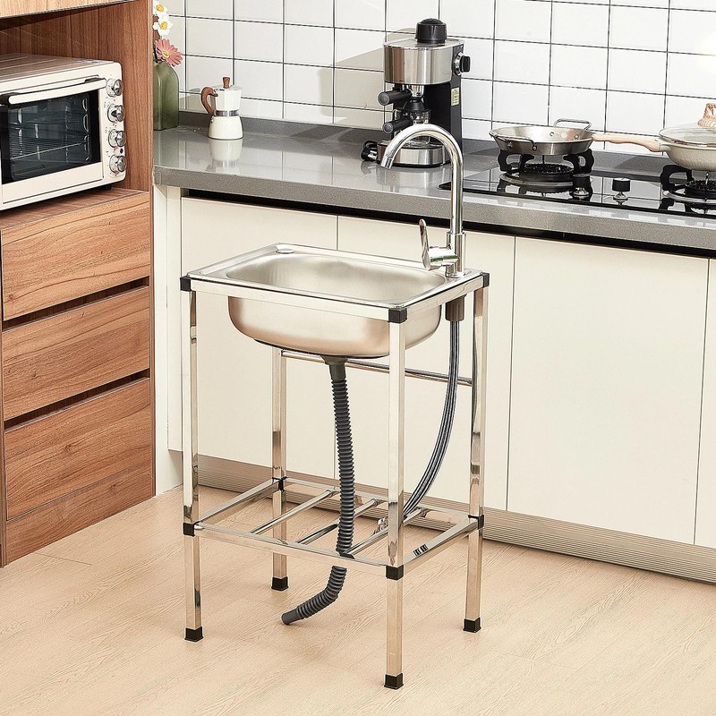 - Quality Material: the free standing kitchen sink is constructed from 304 stainless steel that accessorizes many kitchens; This choice of material is known for its strength and durability, ensuring you will obtain long lasting use and nice resistance to everyday wear and tear; In addition, the entire sink bottom is coated with a wetproof coating, providing good protection