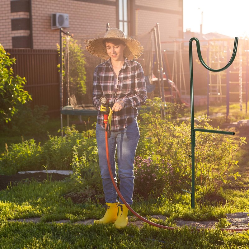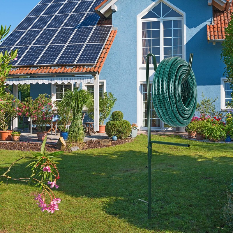 - All-inclusive Garden Hose Stand: our compact garden hose stand comes enclosed in a package including one metal stand; Easily place the hose rack anywhere in your yard that is most convenient for you, no need mount anything to your home, siding, or porch; This independent hose stand is a smart way to utilize your garden and patio space, keeping your hoses off the ground and preventing clogs